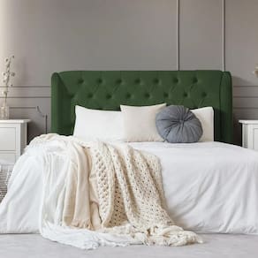A Cabeceira Londres da Arte Estofados é a escolha ideal para quem deseja adicionar um toque de sofisticação ao quarto. Com design imponente e acabamento em veludo verde, ela combina elegância clássica com conforto moderno, criando um ambiente acolhedor e estiloso.