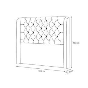 Sua superfície ampla e estofada oferece apoio confortável para a cabeça e as costas, perfeita para momentos de leitura ou relaxamento. Com 195 cm de largura, é com camas queen e king, sendo uma peça de destaque na decoração do ambiente.