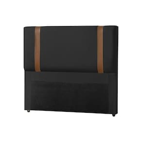 Cabeceira Zeus Preta, Cabeceira Estofada Veludo Preto, Cabeceira com Cinto de Couro, Cabeceira Queen King Preta, Arte Estofados, Cabeceira 195x133 Preta