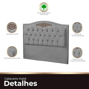 Transforme seu quarto em um refúgio de luxo com nossa cabeceira estofada Maitê para cama box casal. Com um design estiloso e moderno, ela adiciona um toque romântico e sofisticado ao ambiente. Os detalhes em tachinha de alumínio e o aplique em MDF elevam o padrão de elegância. Além disso, os delicados botões encapados com tecido na cor do móvel são o toque final que você estava procurando. Experimente o conforto e o charme que só uma cabeceira assim pode oferecer. Transforme seu quarto em um verdadeiro oásis de beleza e estilo!