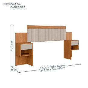 Dimensões: Altura: 125 cm Largura: 223 cm/Box 140 cm - 243 cm/Box 160 cm Profundidade: 35 cm Peso: 47,0 kg