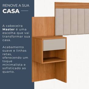 A Cabeceira Master é ideal para deixar o seu quarto mais confortável e aconchegante. Ela conta ainda com duas mesas de cabeceira que deixará tudo mais organizado. Nelas, tem gavetas em corrediças telescópicas proporcionando maior abertura e melhor aproveitamento do espaço. É produzida em chapa de 15mm. Pode ser utilizada para colchões de 140 ou 160cm. Além disso, não necessita parafusar na parede, dando mais flexibilidade no seu ambiente.