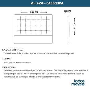 Cabeceira Mh-2650 Herval Estofada Queen 160 Cm Veludo Marrom B A cabeceira MH-2650 é ideal para trazer mais sofisticação para o quarto, tem design moderno e um acabamento detalhado, produto de grande qualidade que contribui e valoriza ainda mais o ambiente. Com sua estrutura em madeira de reflorestamento e estofada com espuma ecológicas proporcionando estabilidade e segurança. As cabeceiras da Herval são todas de madeira maciça podendo ser fixada na parede, no box e na cama desde que os mesmos tenham a estrutura necessária, caso contrário terá que ser utilizado mini frame. Suas medidas são 122 cm de altura, 160 cm de largura e 3 cm de profundidade, ideal para cama Queen. Há outras possibilidades de acabamento para o revestimento. Produto: Cabeceira MH-2650 Herval Estofada Queen 160 cm Veludo Marrom B | Garantia (via): 6 | Cor: Marrom | Materiais: Tecido, Espuma, Madeira | Tonalidade: Marrom | Estilo de Decoração: Moderno | Linha: MH-2650 | Classificação da Cama: Casal | Marca: Herval | Atributos: Versátil, Decorativo, Prático | Área de uso: Interna | Garantia (tempo): 6 meses | Garantia (descritivo): Garantia contra defeitos de fabricação de 06 meses. Consulte as nossas políticas. | Peso (kg): 14.00 | Medidas: Largura (cm): 160.00 | Medidas: Profundidade (cm): 10.00 | Medidas: Altura (cm): 122.00 | Entregue Montado?: Sim | Possui Manual de Montagem?: Acompanha o Produto | Origem do Produto: Nacional | Conservação e Manutenção: Limpeza com pano seco, escova com cerdas macias ou aspirador. | Densidade da Espuma: D28 | Madeira Sustentável?: Sim | Tamanho de Cama: Queen | Estado de Origem: RS | Conteúdo da Embalagem: 1 Cabeceira | Height: 122 CENTIMETERS | Width: 160 CENTIMETERS | SideToSide: 10 CENTIMETERS