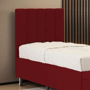 Características do Produto: Madeira de eucalipto proveniente de reflorestamento Fixação com grampos galvanizados Espuma Poliuretano D20 Revestimento: Sued Tamanho: Solteiro para cama box de 88 cm Possui pés: Sim Tipo de pés: 2 pés PVC de 12 cm Embalagem: plástico bolha, papelão ondulado, malha, plástico Fixação diretamente no box através de frames Garantia de 3 meses contra defeitos de fábrica.