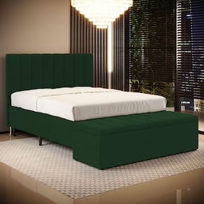 O Kit Cabeceira Nashira e Calçadeira Navi foi inspirada para você, que busca conforto e elegância. Possui um design único e detalhes que dão um toque de sofisticação e um ótimo acabamento, tudo isso com ótimo custo benefício. Possui dois pés de 12 cm e fixação via frames para a sustentação do box, não sendo necessário furar a sua cama, apenas encaixa-la nos suportes da cabeceira. A Calçadeira possui uma ótima capacidade de armazenamento interno, podendo armazenar cobertores, almofadas, entre outros. Adquira já!Dimensões do CabeceiraLargura: 160 cmAltura: 127 cmProfundidade: 10 cmPeso: 20 KgDimensões da CalçadeiraLargura: 160 cmAltura: 45 cmProfundidade: 46 cmPeso: 20 kgDimensões do Produto EmbaladoVolume 1Largura: 162 cmAltura: 129 cmProfundidade: 12 cmPeso: 22 KgVolume 2Largura: 162 cmAltura: 47 cmProfundidade: 48 cmPeso: 22 kgCaracterísticas do Produto:Madeira de eucalipto proveniente de reflorestamentoFixação com grampos galvanizadosEspuma Poliuretano D20Revestimento: SuedCor: VerdeTamanho: Queen para cama box de 158 cmPossui pés: SimTipo de pés: 2 pés PVC de 12 cm e 4 sapatasEmbalagem: plástico bolha, papelão ondulado, malha, plásticoFixação diretamente no box através de framesGarantia de 3 meses contra defeitos de fábrica.Diferenciais: - Madeira de alta qualidade- Design moderno- Material resistente- Ótimo acabamento- Estrutura reforçadaSistema de Montagem: O produto é enviado montado, sendo necessário apenas a fixação dos frames e pés.Manual de Montagem: SimVolume: 2 VolumesMontagem: Recomendamos que seja feita por um profissionalRecomendação de Limpeza: Utilize pano levemente úmidoObservações importantes- Produto para uso residencial em ambiente interno, não devendo ficar exposto diretamente ao sol, calor e umidades excessivas.- Pode haver alguma diferença de tonalidade entre a imagem e o produto real, por conta do tratamento de imagens e a calibração de cores do seu monitor.- As imagens são meramente ilustrativas, não acompanham objetos de decoração e eletrônicos.