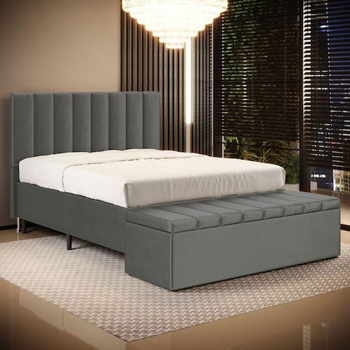 O Kit Cabeceira Nashira e Calçadeira Navi foi inspirada para você, que busca conforto e elegância. Possui um design único e detalhes que dão um toque de sofisticação e um ótimo acabamento, tudo isso com ótimo custo benefício. Possui dois pés de 12 cm e fixação via frames para a sustentação do box, não sendo necessário furar a sua cama, apenas encaixa-la nos suportes da cabeceira. A Calçadeira possui uma ótima capacidade de armazenamento interno, podendo armazenar cobertores, almofadas, entre outros. Adquira já!Dimensões do CabeceiraLargura: 195 cmAltura: 127 cmProfundidade: 10 cmPeso: 25 KgDimensões da CalçadeiraLargura: 195 cmAltura: 45 cmProfundidade: 46 cmPeso: 25 kgDimensões do Produto EmbaladoVolume 1Largura: 197 cmAltura: 129 cmProfundidade: 12 cmPeso: 27 KgVolume 2Largura: 197 cmAltura: 47 cmProfundidade: 48 cmPeso: 27 kgCaracterísticas do Produto:Madeira de eucalipto proveniente de reflorestamentoFixação com grampos galvanizadosEspuma Poliuretano D20Revestimento: VeludoCor: Cinza ClaroTamanho: King para cama box de 193 cmPossui pés: SimTipo de pés: 2 pés PVC de 12 cm e 4 sapatasEmbalagem: plástico bolha, papelão ondulado, malha, plásticoFixação diretamente no box através de framesGarantia de 3 meses contra defeitos de fábrica.Diferenciais: - Madeira de alta qualidade- Design moderno- Material resistente- Ótimo acabamento- Estrutura reforçadaSistema de Montagem: O produto é enviado montado, sendo necessário apenas a fixação dos frames e pés.Manual de Montagem: SimVolume: 2 VolumesMontagem: Recomendamos que seja feita por um profissionalRecomendação de Limpeza: Utilize pano levemente úmidoObservações importantes- Produto para uso residencial em ambiente interno, não devendo ficar exposto diretamente ao sol, calor e umidades excessivas.- Pode haver alguma diferença de tonalidade entre a imagem e o produto real, por conta do tratamento de imagens e a calibração de cores do seu monitor.- As imagens são meramente ilustrativas, não acompanham objetos de decoração e eletrônicos.