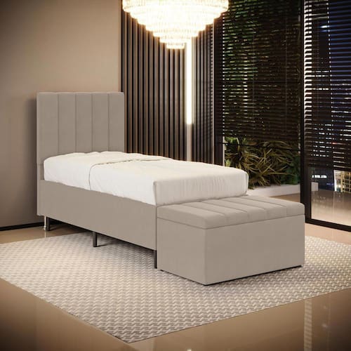 O Kit Cabeceira Nashira e Calçadeira Navi foi inspirada para você, que busca conforto e elegância. Possui um design único e detalhes que dão um toque de sofisticação e um ótimo acabamento, tudo isso com ótimo custo benefício. Possui dois pés de 12 cm e fixação via frames para a sustentação do box, não sendo necessário furar a sua cama, apenas encaixa-la nos suportes da cabeceira. A Calçadeira possui uma ótima capacidade de armazenamento interno, podendo armazenar cobertores, almofadas, entre outros. Adquira já!