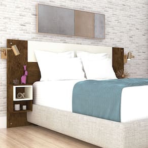 A Cabeceira Casal Regulável com Mesas de Apoio Luxo é projetada para oferecer praticidade sem abrir mão do design. Com mesas de apoio integradas, você terá sempre à mão os itens essenciais para a noite, como livros, luminárias e outros objetos pessoais. As mesas de apoio são espaçosas e oferecem um excelente espaço de armazenamento.