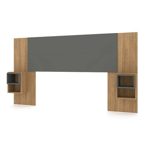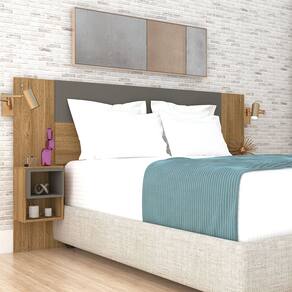 Cabeceira Painel Casal Regulável com Mesas de Apoio Luxo Nature/Alasca - Pallazio - Marrom