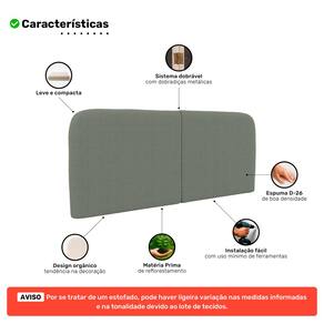 Desenvolvida com estrutura em madeira de eucalipto e espuma D-26, oferece durabilidade, conforto e leveza. Sua parte traseira conta com acabamento em TNT e já acompanha fixadores de parede, facilitando a instalação.