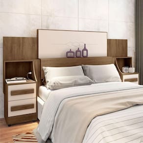 A cabeceira de casal Síria, é o produto mais indicado para quem deseja beleza e conforto enquanto aproveita seu momento de descanso. Possui duas mesas de cabeceiras com gavetas com corrediças e puxadores MDF, além de tomadas embutidas. Conta também com design moderno, sem deixar de lado requinte e sofisticação.