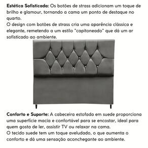 Fabricada com materiais de alta qualidade, como madeira eucalipto e revestimento em suede, esta cabeceira é durável e resistente, além disso os detalhes de costura com strass conferem um toque de sofisticação e elegância ao seu espaço.