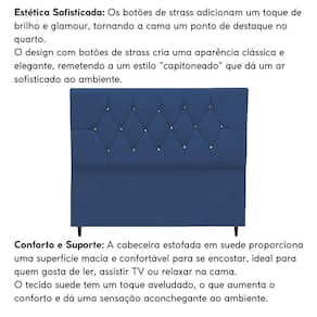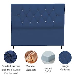 Cabeceira Para Cama Box Estofada King 195 Cm Suede Madri azul Marinho