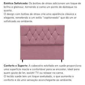 Com botões Strass, dispostos em uma padronagem elegante, trazem um brilho sutil e adicionam um toque de glamour à cabeceira. Cada detalhe foi cuidadosamente trabalhado, fazendo dela o ponto focal do seu quarto.