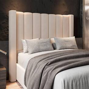 Está afim de garantir um toque chic em seu dormitório? A Cabeceira Rania é a aposta certa! Suas medidas são indicadas para cama Box King de 193 cm. Produzida com materiais de qualidade, em madeira de eucalipto um material mais resistente que proporciona estabilidade e durabilidade ao produto. Revestida em tecido Veludo em tom Bege ideal para agregar um visual mais acolhedor ao quarto. Ela tem um design delicado canelado e encaixe nas laterais, perfeito para oferecer uniformidade visual, permitindo que sua decoração fique mais alinhada. Contém também sapatas plásticas que são propícias para manter a cabeceira segura amparada ao chão. Uma dica legal é utilizar pontos de luz no teto ou led atrás da cabeceira, para dar mais destaque à peça. Gostou? Então mãos à massa, é hora de transformar seu quarto em um local mais atraente com a Cabeceira Rania!