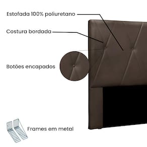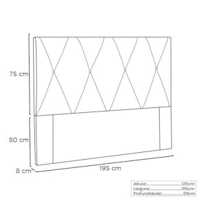 Ela possui estrutura em Madeira Industrializada espuma D-23, botões forrados no tecido veludo com costura bordada que garante durabilidade e resistência.