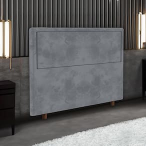 Cabeceira para Cama Box Queen Size Portobel Evelyn com Revestimento em Suede – 160cm de largura - Cinza