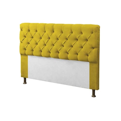 Cabeceira para Cama Box Solteiro 90cm Mirage c/ Capitonê Suede Amarelo - LM DECOR