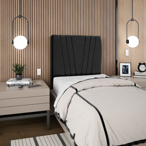 Cabeceira Para Cama Box Solteiro Carla 90cm Suede Preto - Preto