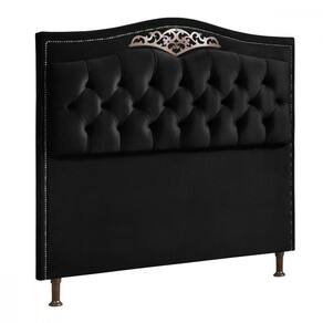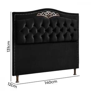Cabeceira Para Cama De Casal Holanda 1,40 - Veludo Preto Com lindo design retro essa linha apresenta uma serie de cabeceiras com medidas variadas e cores atuais que sao boas escolhas para quem busca e renovar a decoracao do quarto, sem deixar de lado o conforto e a praticidade. Resistente e confeccionada com materiais de alta qualidade, suas medidas sao indicadas para o uso com base box e colchao de 0,90 ate 1,95 vendidos separadamente. Combine-a com travesseiros e almofadas de sua preferencia e torne seu decor ainda mais charmoso e aconchegante. Caracteristicas do Produto Material da Estrutura: Madeira de eucalipto. Material e Densidade da Espuma: Poliuretano sem carga. Revestimento: Veludo Possui Pes: Sim Tipo de Pe: Pe de PVC de 13 cm Possui Frame: Sim Tipo de Frame: Frame de metal. #8203; Diferenciais: Espuma de alta qualidade. Design retro. Costura resistente. Montagem Facil Estrutura resistente Aplique de chapa de 3 mm decorativa Tachinha fume decorativa.