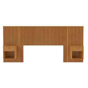 Características: Marca: JCM Movelaria Modelo: Cabeceira Sonhar com Duas Mesas de Cabeceira Mesclado em MDP e MDF Cabeceira para Cama de Casal Ripado Natural envelopado Gaveta com corrediça telescópica Puxador em couro e argola
