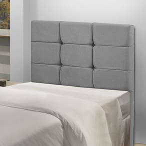 A cabeceira Julia traz um design sofisticado, ideal para renovar a decoração do seu quarto com muito estilo e conforto. Fabricada com materiais de alta qualidade e bastante resistência, ela é projetada para camas box de 0,88 cm, oferecendo praticidade sem abrir mão da elegância. Combine-a com almofadas e travesseiros que mais combinam com seu ambiente para criar um espaço acolhedor e cheio de charme. Características: Estrutura: Madeira de Reflorestamento Espuma: D12 Revestimento: Veludo macio Acabamento: Detalhe com botões Pés: Não acompanha Sapata: 2 unidades, feitas de plástico, com 1 cm de altura Fixação: Parafuso -fixação no Box- Conteúdo da embalagem: 1 cabeceira e parafusos Montagem: Produto entregue montado, com necessidade de fixação no Box -recomendamos que a instalação seja realizada por um profissional especializado-. Limpeza: Limpeza com pano levemente umedecido