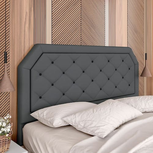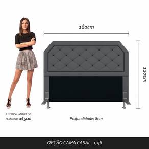 A Cabeceira Estofada Para Cama Queen Florença com um design sofisticado, romântico e exclusivo é perfeito para modernizar e deixar seu ambiente mais aconchegante e relaxante para sua noite de sono.Detalhes TécnicosMedidas da Cabeceira Montada: A:120cm | L:160cm | P:8cmMateriais de Fabricação- Estrutura: Madeira Eucalipto- Tonalidade: Suede Cinza/Preto- Pés de 13cm em Polietileno- Medida para Cama: 1,58 cm- Acompanha kit frame- Estruturado com material de altíssima qualidade, evitando fungos e mofo.Conteúdo da Embalagem- 01 Cabeceira- Manual de Montagem- Acessórios para MontagemObservações Importantes- As imagens ambientadas são meramente ilustrativas e podem apresentar itens que não incorporam o produto;- Todos os nossos produtos são novos, acompanham documento fiscal e possuem garantia de 3 meses, essa garantia cobre somente defeitos de fabricação;- A entrega só será efetuada no endereço do CEP, caso o endereço seja diferente do CEP informado no pedido, a entrega terá cobrança adicional e o comprador arcará com as despesas;- Não realizamos entregas para zonas rurais, via caminhos fluviais e distritos, por isso não aceitamos CEP GERAL da região;- Não é possível realizar o agendamento de entrega do produto, é necessário que acompanhe o rastreio de seu pedido para saber a previsão de entrega;- As entregas somente serão realizadas para um responsável maior de idade (+18);- Enviamos para diversos estados, sendo assim nossas entregas são realizadas por transportadoras parceiras de nossa empresa. Confira as dimensões antes da compra e certifique-se de que o produto passará por elevadores, portas e corredores já que nossa entrega não inclui a subida de lances de escada, transporte por elevador e o lançamento de produtos, em caso de condomínios residenciais a entrega é feita somente até a portaria. Todas as entregas são realizadas em dias e horários comerciais;- Ao receber os seus produtos observe se a embalagem se encontra em perfeitas condições. Se você adquiriu algum móvel, confira atentamente a quantidade de volumes e o aspecto físico das embalagens. Confira também se a cor do móvel está de acordo com o seu pedido;- O prazo de cancelamento por arrependimento é de até 7 dias corridos a contar da data de recebimento;- Os produtos e assistências são enviados DESMONTADOS, MONTAGENS E DESMONTAGENS recomendamos sempre a contratação de um montador profissional e é válido lembrar que o custo desses serviços é por conta do comprador;- Objetos decorativos que aparecem na foto não acompanham o produto;- Evitar a exposição direta à luz solar e à umidade;- Para limpeza, limpar com pano macio e seco, não utilizar qualquer outro tipo de produtos químicos;- As cores do produto podem variar de acordo com o monitor, a iluminação do ambiente ou sua percepção visual;