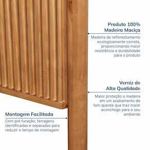 A Cabeceira Oiti, disponível nos tamanhos queen e casal, é a síntese perfeita de robustez e elegância em um design rústico sofisticado, trazendo um toque natural e aconchegante ao quarto. Produzida inteiramente em madeira maciça de pinus, a cabeceira possui um acabamento em verniz de alta qualidade que realça a tonalidade quente da madeira, criando um ambiente acolhedor. O grande destaque da cabeceira é o acabamento boleado, que confere uma textura refinada e visualmente impactante, elevando a peça a um novo patamar de sofisticação. Inspirada na robustez e beleza da árvore Oiti, esta cabeceira oferece uma combinação de durabilidade e estilo, ideal para quem valoriza um ambiente acolhedor sem abrir mão da funcionalidade e do bom gosto. Produto Montado: Sim Acabamento dos Pés: Verniz Altura dos Pés: 104 cm Altura Máxima dos Pés: 104.0000 Ambiente Principal: Quarto Cabeceira Estofada: Não codigo_ean: 7900288014993 Complexidade da Montagem: Baixa: pode ser montado por uma pessoa sozinha Cor: Marrom Cor do Produto: Marrom Escala de Brilho: Semi-Fosco Extensível: Não Fixação Box: Não Fixação na Parede: Sim Itens Inclusos: 01 Cabeceira para cama Queen, manual de montagem e kit ferragens Largura do Colchão Indicado: 158cm Linha ou Coleção: Oiti Manual de Montagem e Instalação: https://product-hub-prd.madeiramadeira.com.br/968542/documents/9d719051-3045-45c3-bfcd-9c71fdd515b5252953490317305004570951.pdf Marca: CabeCasa MadeiraMadeira Material dos Pés: Madeira Maciça Material Principal: Madeira Maciça Necessita Montagem: Sim Origem do Produto: Nacional Peso: 18 kg Possui Baú: Não Possui Espelho: Não Possui Mesa de Cabeceira: Não Possui Pés: 02 Possui Rodízio: Não Possui Possui Vidro: Não Recomendações de Uso, Manutenção e Limpeza: A limpeza deve ser feita com pano levemente umedecido, não utilizar produtos químicos ou abrasivos. Sapatas Niveladoras: Não Sistema de Montagem: Parafusos Tipo de Colchão: Queen Tipo de Madeira Maciça: Pinus Tipo de Madeira Maciça dos Pés: Pinus