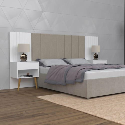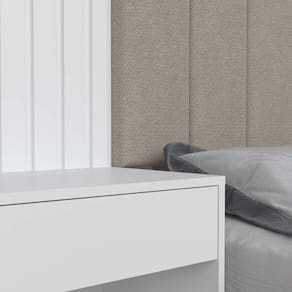 Cabeceira para Cama Box Casal Flex Zara Capitone Branco c/ 2 Mesas de Cabeceiras - Robel Móveis