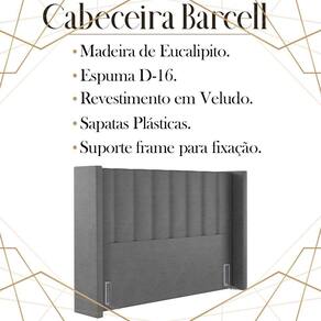 Cabeceira Queen 158 cm Barcell Veludo, ideal para inovar o seu quarto com toque luxuoso e ao mesmo tempo refinado. Estrutura em madeira de eucalipto, que oferece maior durabilidade ao produto. Composta por revestimento em tecido veludo, conta com espuma D-16 de altíssima qualidade, sapatas plásticas e acompanha frames para facilitar a fixação no box, é ideal para colchão Queen de 158 cm. Unindo elementos do design contemporâneo, que proporcionam uma ambientação moderna e com acabamentos sofisticados. Este móvel chegará na sua casa separado em 01 volume.