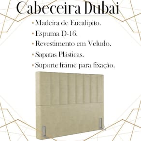 Cabeceira Queen 158 cm Dubai Veludo, ideal para inovar o seu quarto com toque luxuoso e ao mesmo tempo refinado. Estrutura em madeira de eucalipto, que oferece maior durabilidade ao produto. Composta por revestimento em tecido veludo, conta com espuma D-16 de altíssima qualidade, sapatas plásticas e acompanha frames para facilitar a fixação no box, é ideal para colchão Queen de 158 cm. Unindo elementos do design contemporâneo, que proporcionam uma ambientação moderna e com acabamentos sofisticados. Este móvel chegará na sua casa separado em 01 volume.
