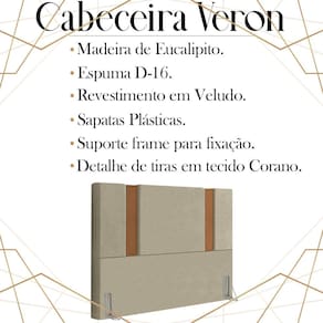 Cabeceira Queen 158 cm Veron Veludo, é a escolha certa para você que busca conforto e modernidade, tornando o seu quarto muito mais versátil e sofisticado. Estrutura em madeira de eucalipto, que oferece maior durabilidade ao produto. Composta por revestimento em tecido veludo com detalhe de tiras em tecido corano, conta com espuma D-16 de altíssima qualidade, sapatas plásticas e acompanha frames para facilitar a fixação no box, é ideal para colchão Queen de 158 cm. Com design que proporciona elegância, charme e luxuosidade ao seu quarto. Este móvel chegará na sua casa separado em 01 volume.
