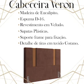 Madeira de eucaliptoCabeceira Queen 158 cm Veron Veludo, é a escolha certa para você que busca conforto e modernidade, tornando o seu quarto muito mais versátil e sofisticado. Estrutura em madeira de eucalipto, que oferece maior durabilidade ao produto. Composta por revestimento em tecido veludo com detalhe de tiras em tecido corano, conta com espuma D-16 de altíssima qualidade, sapatas plásticas e acompanha frames para facilitar a fixação no box, é ideal para colchão Queen de 158 cm. Com design que proporciona elegância, charme e luxuosidade ao seu quarto. Este móvel chegará na sua casa separado em 01 volume.