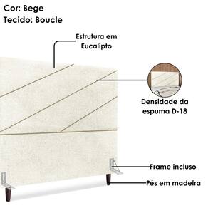 Definição de conforto a Cabeceira Queen Cristal foi desenvolvida para agregar mais modernidade e aconchego ao quarto! Com estrutura em Madeira de Eucalipto (reflorestada) e estofada em espuma (densidade D-18), conta com revestimento em tecido Bouclé (macio e texturizado) e detalhe Diagonal na costura. Incluso Frame (metal resistente com reforço lateral e acabamento em pintura epóxi) para fixação em camas Box e pés em madeira maciça (12 cm). Pode haver variação no design do frame dependendo do lote de peças. A função do acessório e usabilidade permanece a mesma. Este produto será entregue em 1 volume.