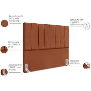 Transforme o seu quarto com a Cabeceira Queen Allia. Projetada para oferecer um toque moderno e aconchegante, esta cabeceira é feita com uma estrutura em madeira de eucalipto, garantindo durabilidade e resistência. Com 160cm de largura, seu revestimento em suede e espuma de densidade D-18, proporcionam uma sensação agradável ao toque e um suporte confortável. As sapatas plásticas garantem estabilidade e proteção para o seu piso, evitando riscos e danos. Além disso, o produto vem acompanhado de frame de metal, facilitando a instalação e proporcionando maior segurança. Ideal para quem busca funcionalidade e estilo. Este móvel chegará em sua casa separado em 01 volume.