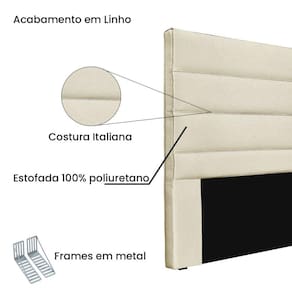 Cabeceira La Italiana, no seu nome já diz tudo! Traz em suas linhas horizontais toda em costura italiana o moderno clássico aconchegante. Produzida com muita sofisticação em Madeira de reflorestamento e Estofada 100% em espuma D23. Altura dos Pés: 1 Ambiente Principal: Quarto Cabeceira Estofada: Sim Cor: Pérola Cor do Produto: Pérola Escala de Brilho: Semi-Fosco Extensível: Não Fixação Box: Sim Fixação na Parede: Não Itens Inclusos: 1 Cabeceira, Kit Ferragens e Manual de Montagem Largura do Colchão Indicado: 160 Linha ou Coleção: La Italiana Manual de Montagem e Instalação: https://cdn2.madeiramadeira.com.br/atributo/spezzia-decor/1263849-978780-963153-manual-cabeceira.pdf Material dos Pés: Plástico Material Principal: Madeira Maciça Necessita Montagem: Não Origem do Produto: Nacional Peso: 10.3 Possui Espelho: Não Possui Possui Mesa de Cabeceira: Não Possui Pés: 02 Possui Rodízio: Não Possui Vidro: Não Recomendações de Uso, Manutenção e Limpeza: Limpeza: Utilize pano levemente úmido Sapatas Niveladoras: Sim Tipo de Colchão: Queen Tipo de Madeira Maciça: Eucalipto