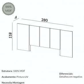 Dimensões: Altura: 118 cm Largura: 280 cm Profundidade: 4 cm