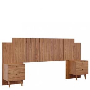 A Cabeceira Queen com 2 Mesas Lateral 2 Gavetas em MDF Genova Panan e perfeita para quem busca elegancia e funcionalidade no quarto. Fabricada em 100 MDF, ela oferece alta durabilidade e um acabamento de qualidade. Suas mesas laterais possuem duas gavetas cada, equipadas com corredicas telescopicas que proporcionam um deslizamento suave e silencioso. Os pes de madeira macica reforcam a estrutura, trazendo estabilidade e um toque natural ao design. O puxador Self PT complementa o visual moderno e sofisticado, enquanto a cor e o acabamento tornam essa cabeceira uma peca que se adapta facilmente a diferentes estilos de decoracao.
