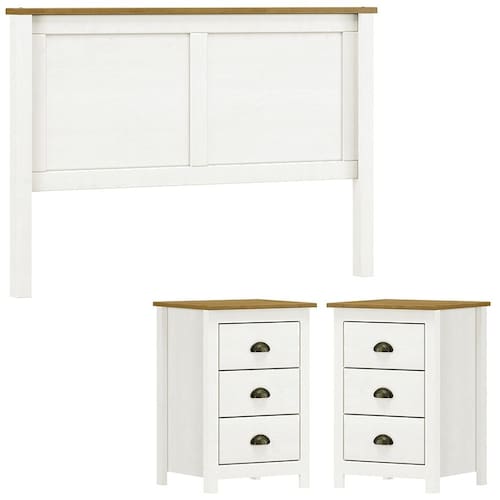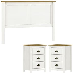 Cabeceira Queen e 02 Mesas Cabeceira 3 Gv Madeira Maciça Branco Freijo Milani Store