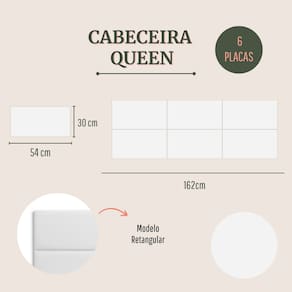 Tamanho Queen (6 placas): 162 cm (comprimento total) x 60cm (altura) x 3 cm (profundidade).
