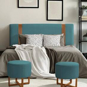 Com seu design atemporal e sofisticado, a Cabeceira Zeus é perfeita para adicionar um toque de elegância ao seu quarto. Seu acabamento em veludo azul transmite requinte, enquanto os dois cintos decorativos em couro trazem um charme exclusivo e moderno à peça.