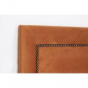 Cabeceira Queen Reta Luxo 160x60 Veludo Terracota - Tachas Fumê