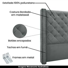 Cabeceira Decorativa Queen Size 1,84m Loewe Veludo Cinza - Gran Belo