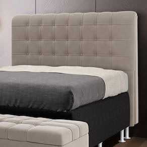 A Cabeceira Rana possui um design soft e delicado, perfeita para pessoas com um estilo mais moderno. Possui detalhes em botões e plaquetas laterais decorativas, tudo isso com um ótimo custo benefício. Possui dois pés de 12 cm e 2 frames para a sustentação do box, não sendo necessário furar a sua cama, apenas encaixa-la nos suporte da cabeceira. Adquira já!