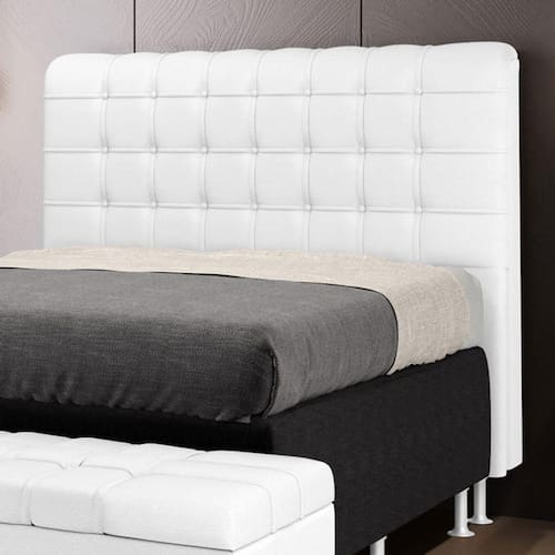 Características do Produto: Madeira de eucalipto proveniente de reflorestamento Fixação com grampos galvanizados Espuma Poliuretano D20 Revestimento: Sued Tamanho: Queen para cama box de 158 cm Possui pés: Sim Tipo de pés: 2 pés 12 cm Embalagem: plástico bolha, papelão ondulado, malha, plástico Fixação diretamente no box através de frames Garantia de 3 meses contra defeitos de fábrica. Ean: 7798946009951 Ean: 7798946000842