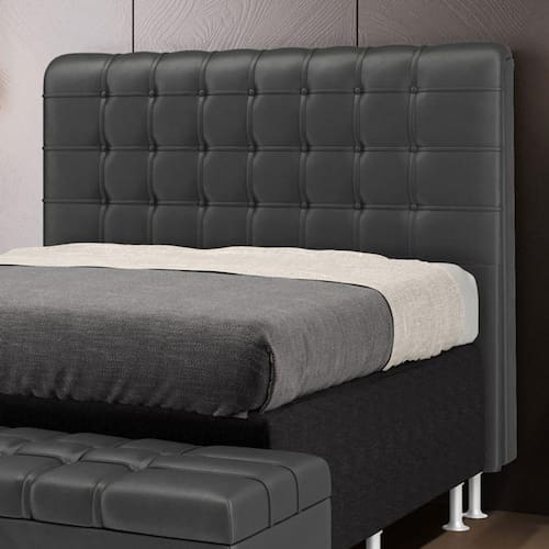 Características do Produto: Madeira de eucalipto proveniente de reflorestamento Fixação com grampos galvanizados Espuma Poliuretano D20 Revestimento: Sued Tamanho: Queen para cama box de 158 cm Possui pés: Sim Tipo de pés: 2 pés 12 cm Embalagem: plástico bolha, papelão ondulado, malha, plástico Fixação diretamente no box através de frames Garantia de 3 meses contra defeitos de fábrica. Ean: 7798946020161 Ean: 7798946010810 Ean: 7798946010193