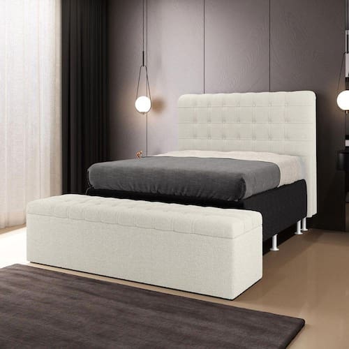 A Cabeceira Rana possui um design soft e delicado, perfeita para pessoas com um estilo mais moderno. Possui detalhes em botões e plaquetas laterais decorativas, tudo isso com um ótimo custo benefício. O produto possui dois pés de 12 cm e 2 frames a sustentação do box, não sendo necessário furar a sua cama, apenas encaixa-la nos suportes da cabeceira. Junto com a Calçadeira Alpha, que irá te impressionar com seus detalhes em botões e seu baú interno, tendo uma ótima capacidade de armazenamento interno, podendo armazenar cobertores, almofadas, entre outros. Adquira já!