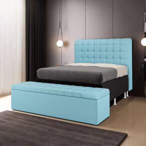 Cabeceira Rana e Calçadeira Alpha 160 Couro Aradecor - Azul Bebê