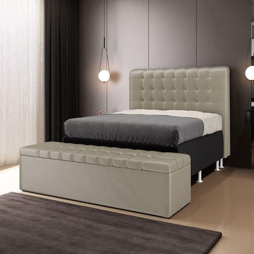 A Cabeceira Rana possui um design soft e delicado, perfeita para pessoas com um estilo mais moderno. Possui detalhes em botões e plaquetas laterais decorativas, tudo isso com um ótimo custo benefício. O produto possui dois pés de 12 cm e 2 frames a sustentação do box, não sendo necessário furar a sua cama, apenas encaixa-la nos suportes da cabeceira. Junto com a Calçadeira Alpha, que irá te impressionar com seus detalhes em botões e seu baú interno, tendo uma ótima capacidade de armazenamento interno, podendo armazenar cobertores, almofadas, entre outros. Adquira já!