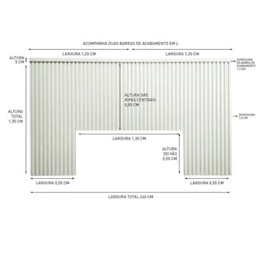 Acompanha duas barras de acabamento em L de 120cm cada, para fixação na extremidade superior da cabeceira.